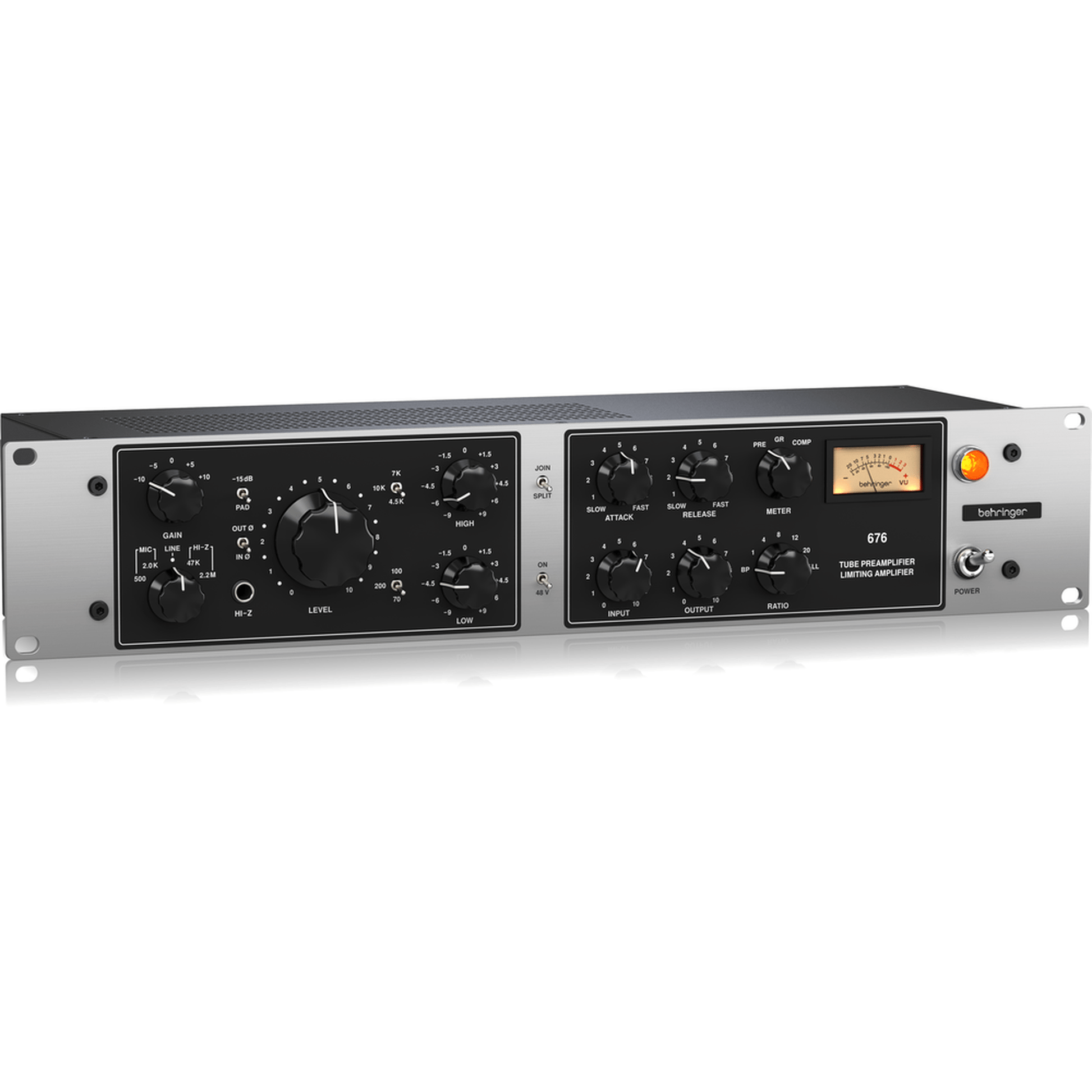 The Behringer 676 Classic Vacuum Tube Preamplifier is a professional-grade channel strip that combines vintage analog warmth with modern precision. Inspired by the legendary 6176 design, this unit integrates a tube preamplifier and a FET-style compressor, delivering rich harmonic content and dynamic control for vocals, instruments, and more.