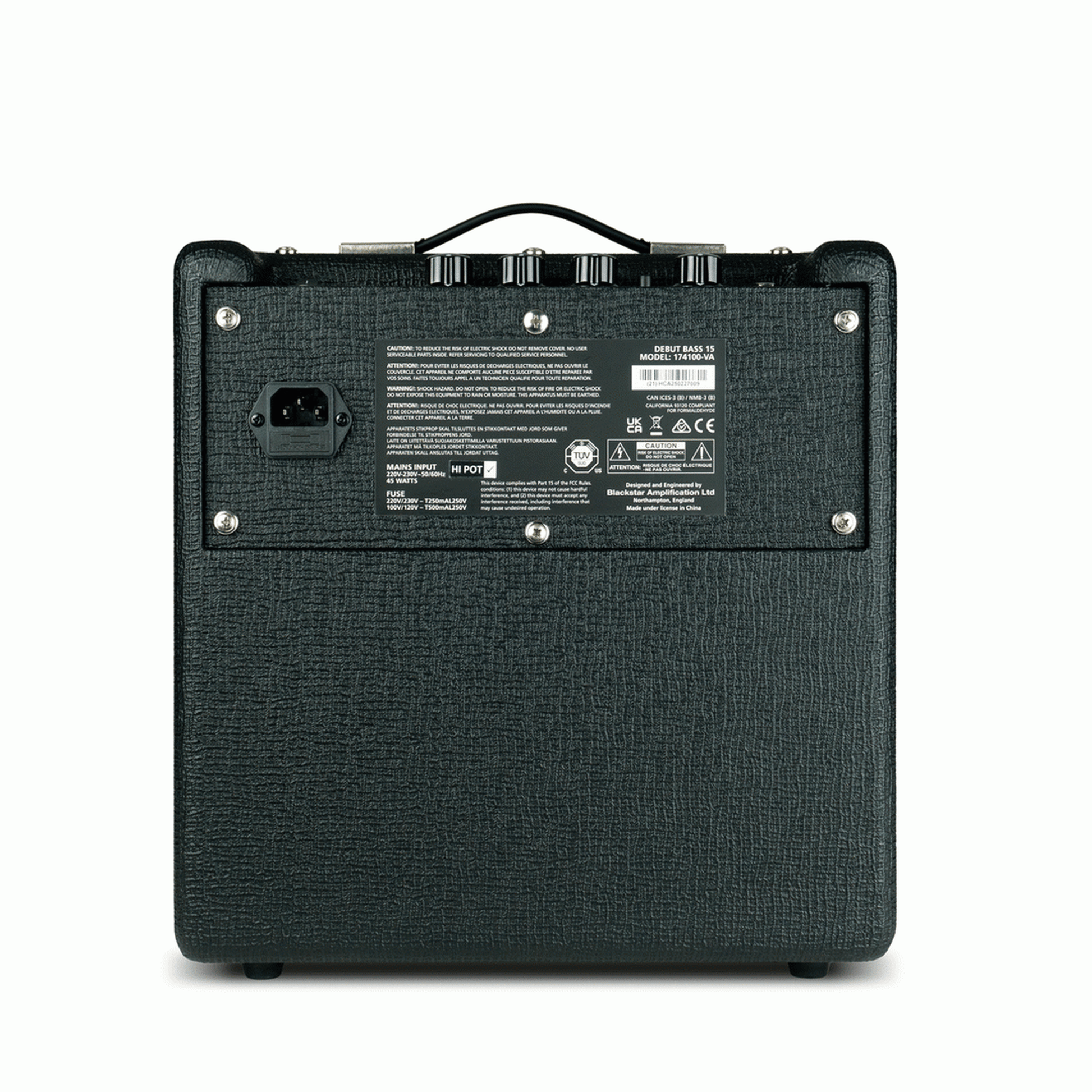 The Blackstar DEBUT BASS 15, a traditional, simple-to-use bass amp perfect for home practice.