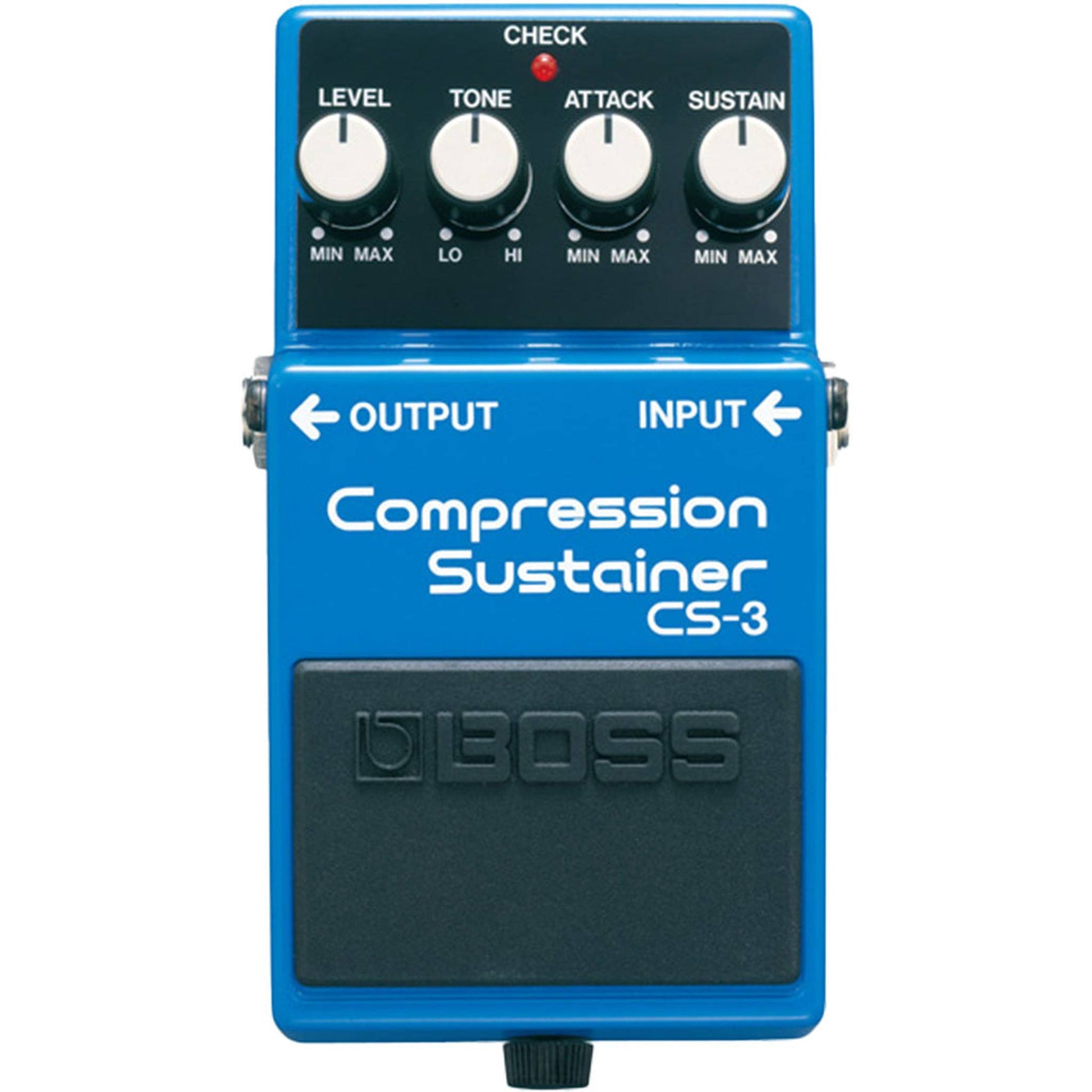Countless guitarists trust the CS-3 Compression Sustainer for its smooth sound and outstanding versatility. From subtle dynamics control to rich, clean sustain, this blue BOSS classic provides exceptional balance and articulation, whether playing rhythm or lead. Level, Tone, Attack, and Sustain knobs offer precise, intuitive operation and the ability to shape your sound for any musical style. In continuous production since 1986, the CS-3 is a go-to staple for players seeking natural-sounding compression.