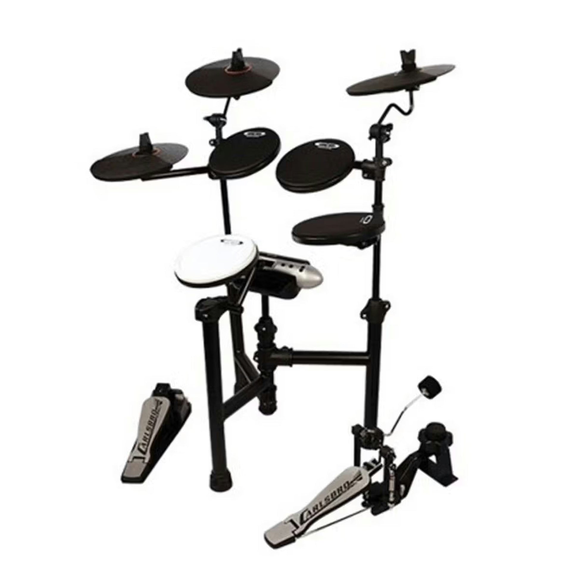 The Carlsbro CSD130BK Electronic Drum Kit brings professional‐grade percussion to your fingertips with its Commander 130 sound module and comprehensive pad configuration. This impressive kit includes a 7.5" tri‐zone snare pad, three 7.5" natural rebound tom pads, two 10" cymbals with choke functionality, and a 10" hi‐hat, all mounted on an ultra‐compact yet heavy‐duty 3‐legged drum rack. The system comes complete with heavy duty hi‐hat and bass drum pedal controllers, plus all necessary mounting hardware and cables.