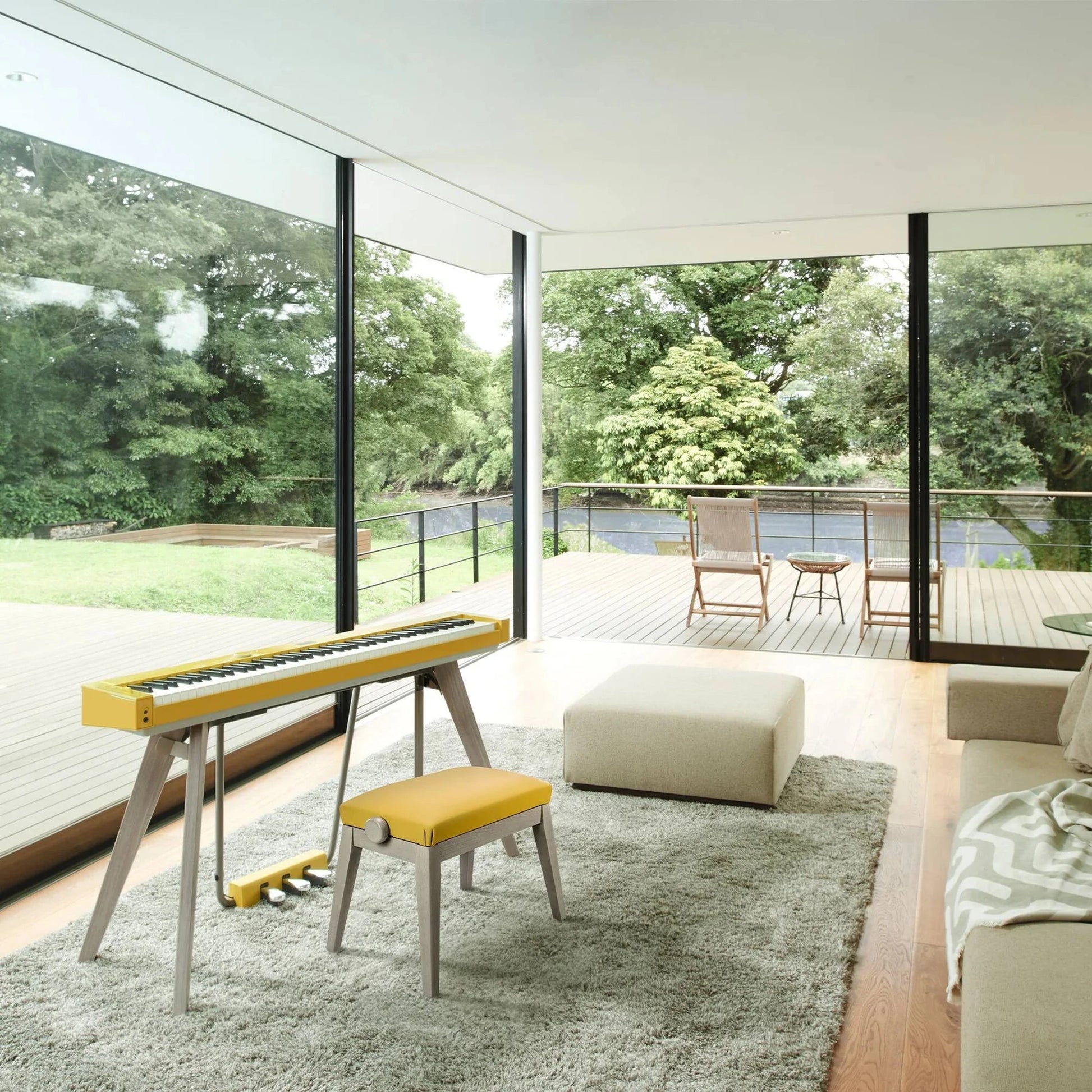 Founded by Antonio Romera in 1975, Hidrau has always been at the forefront of innovation, continually seeking the newest materials, technology, and designs. Their latest creation, the Kōbe Piano Bench, is an expertly crafted, luxurious designer piano bench. Its unique design mirrors Casio's distinctive range of Privia digital pianos. A Perfect Match. The Kobe BG50 is inspired by the award-winning PXS7000 series and designed exclusively for the new Casio Privia range. Its elegant wood finish, tapered legs and striking seat colour are meticulously crafted to complement the exceptional design of this remarkable digital piano.