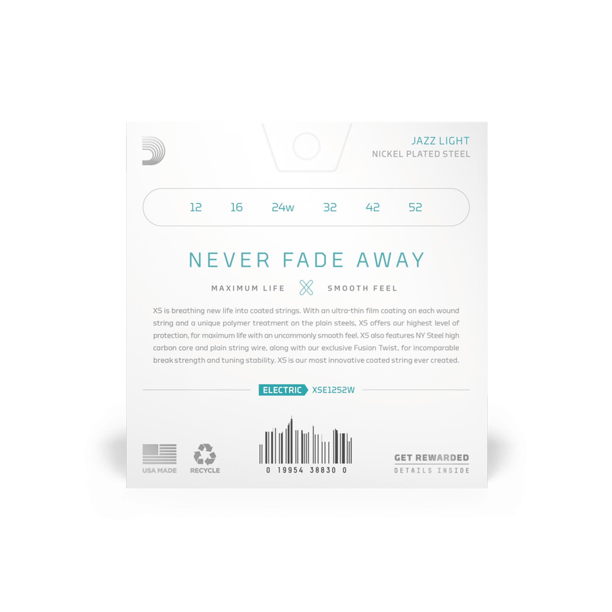 XS Nickel coated electric guitar strings provide the longest life of any D’Addario electric guitar string. Coated with our groundbreaking XS coating, these premium electric strings attain maximum life and a smooth, fast feel without dampening their outstanding tone. Constructed with a NY Steel core, reformulated nickel-plated steel wrap wire, and Fusion Twist technology, XS Nickel strings boast superior strength and tuning stability, plus richer harmonics, greater clarity, and remarkable definition with every sweep, slide, and bend. This 12-52 Light Wound Third set features a wound 3rd/G-string, providing more tension for drop tuning, as well as accommodating a traditional jazz setup.