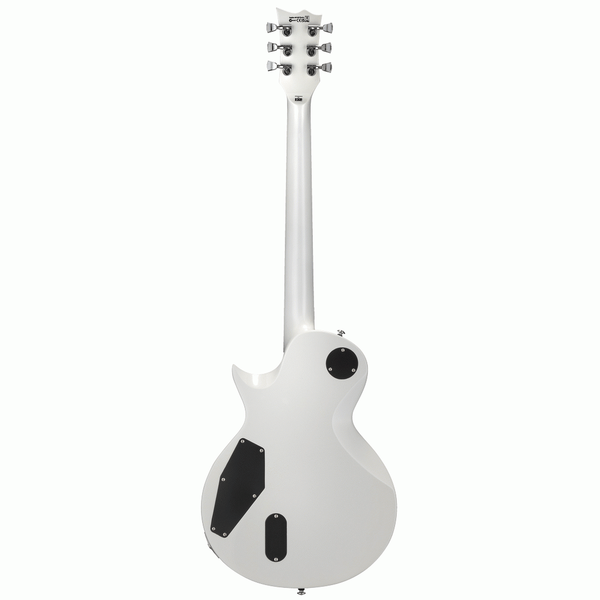 - Classic Eclipse single-cut body with a pearl white gloss finish and single-ply black binding — bold and striking under stage lights.
