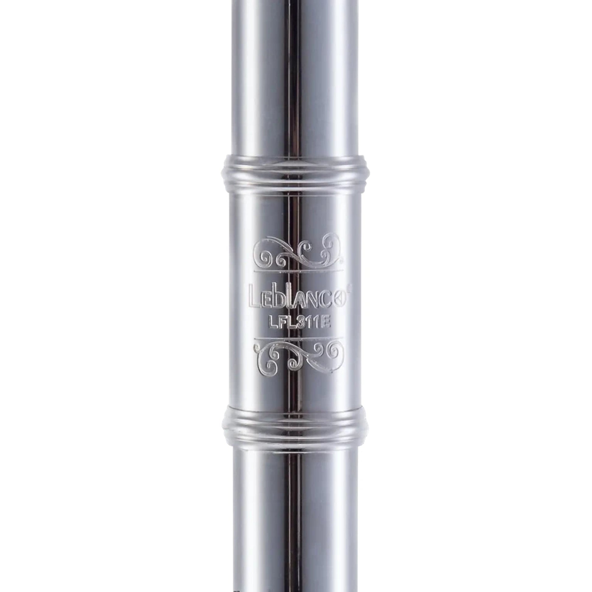 The Leblanc LFL311 flute features a silver-plated, Japanese nickel silver head joint, body and key work with pointed arms and options for split E mechanism, offset or inline G, and closed or open holes.