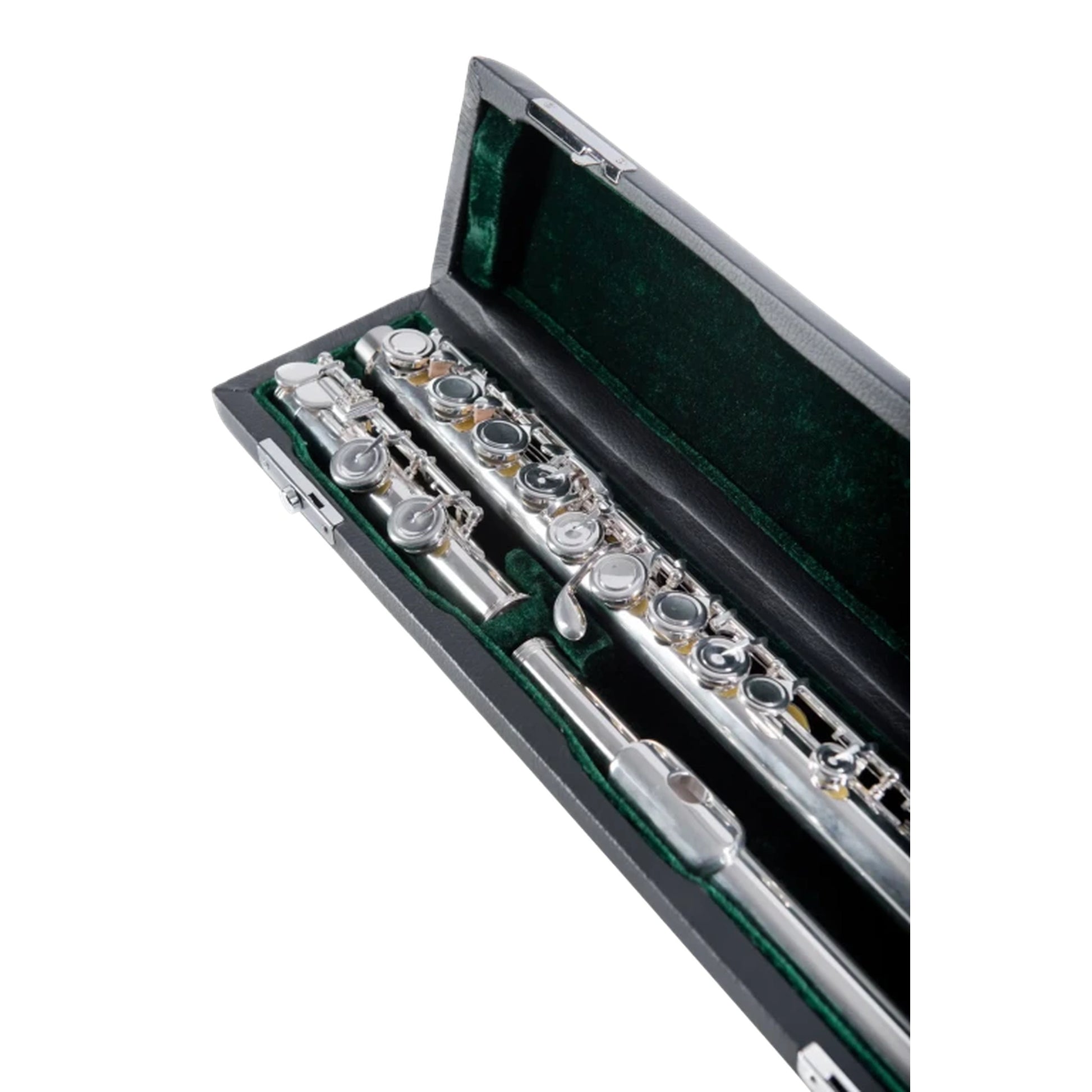 With a multi-tapered bore for optimal acoustic response and resonance, the head joint features a sharp blowing edge of the embouchure hole that creates a fast, easy response and articulation. Great for the advancing player due to its effortless playability, the head joint design features elegant under and over cutting to provide easy first tones that are rich, expressive, and even throughout all registers. This flute comes with a split E mechanism that makes playing in the 3rd octave easier. Featuring pointed arms, the key work is hand assembled to create a feather-light, lightning-fast and fluid key action.