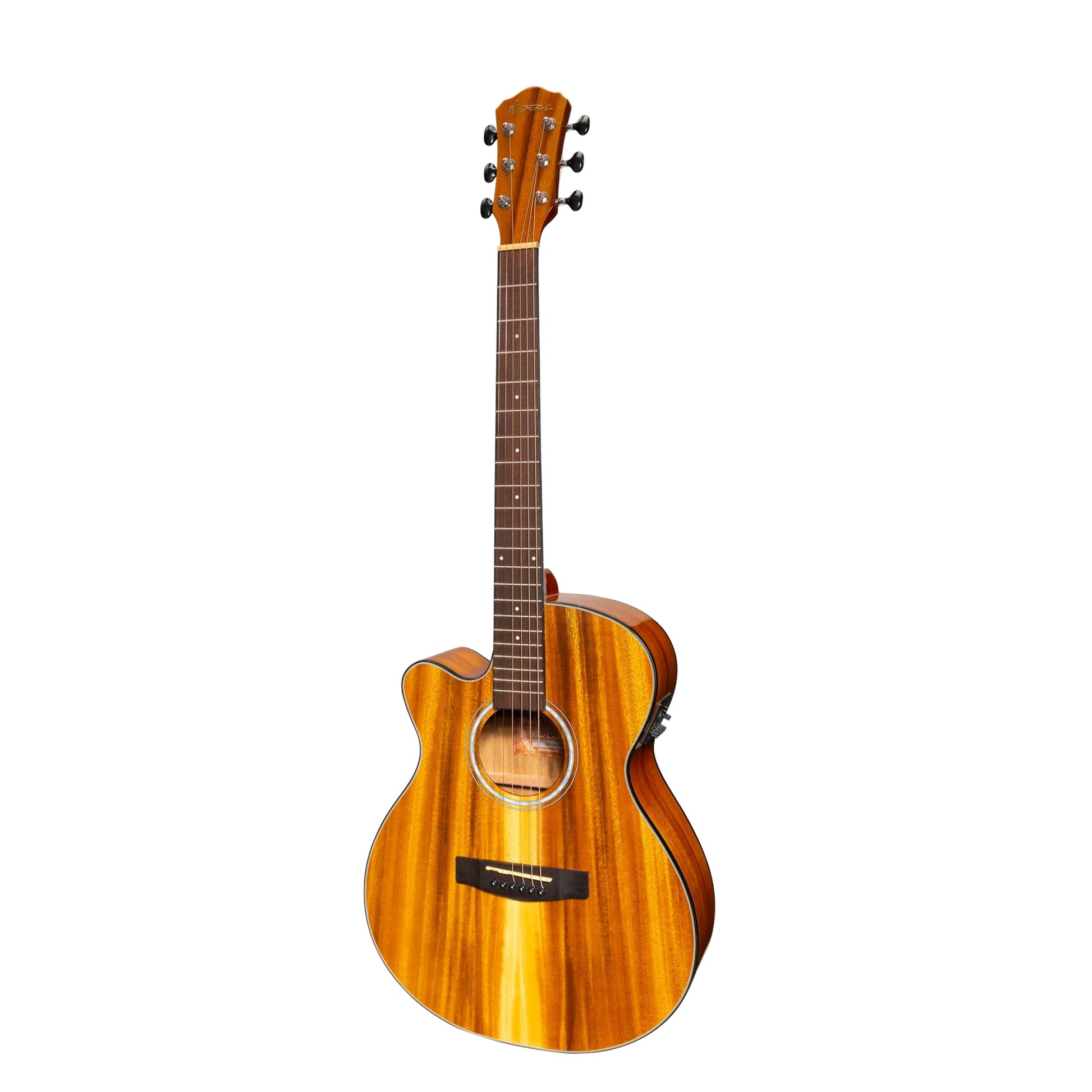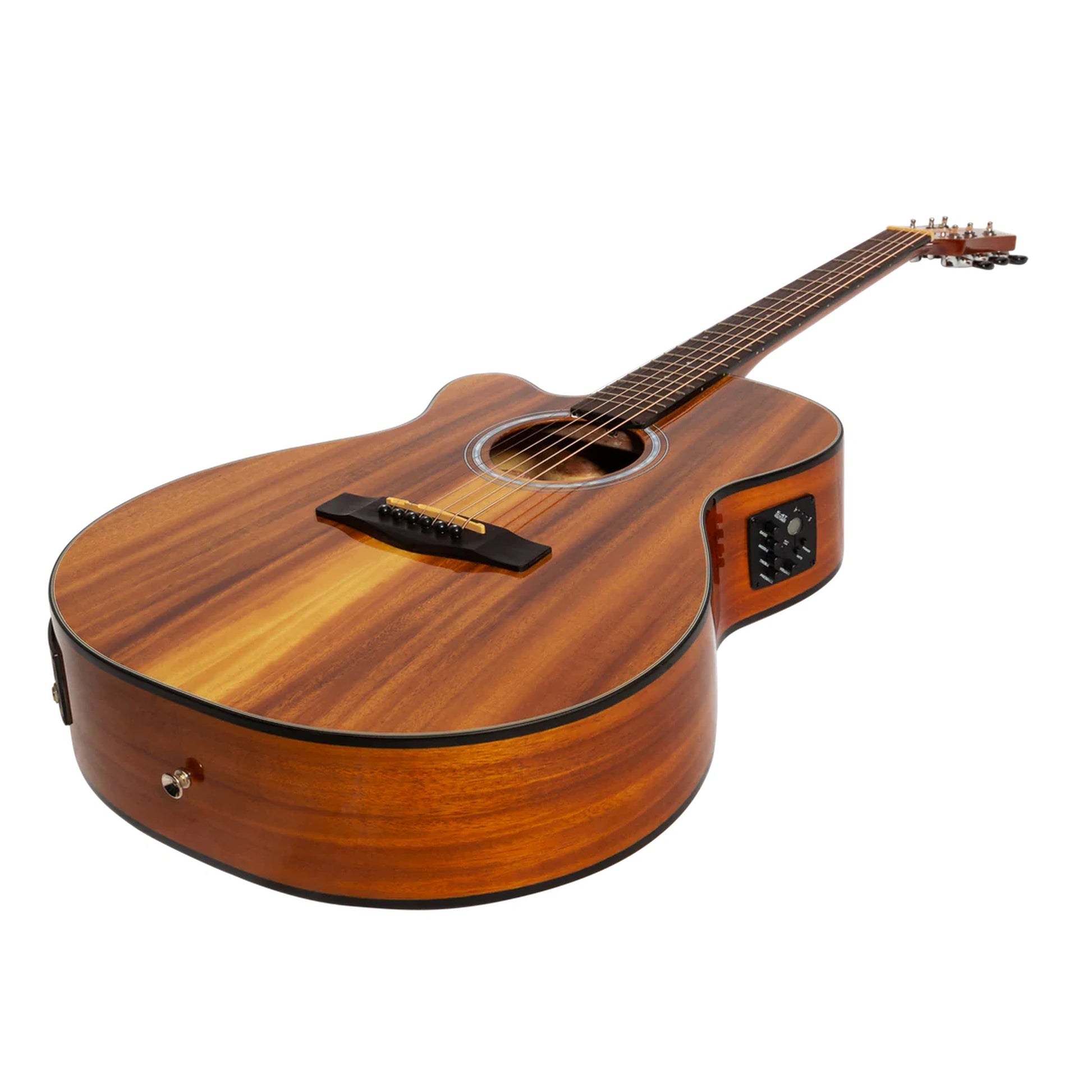 The Martinez '51 Series' Folk Size Cutaway Acoustic-Electric Guitar Koa (Gloss) is an ideal choice for students and intermediate players wanting the tone, feel and appearance of an iconic acoustic guitar in a value-priced package.