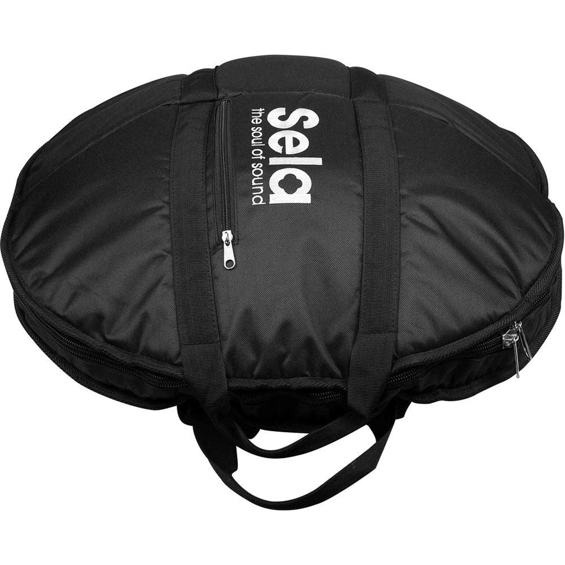 Each Sela Handpan comes with a bag made of tear-resistant nylon fabric, which, thanks to its good lining, provides optimal protection during transport. It can be carried either by hand with the two handles or comfortably as a backpack with the adjustable shoulder straps. A practical outer compartment offers enough space for small accessories such as a metronome.
