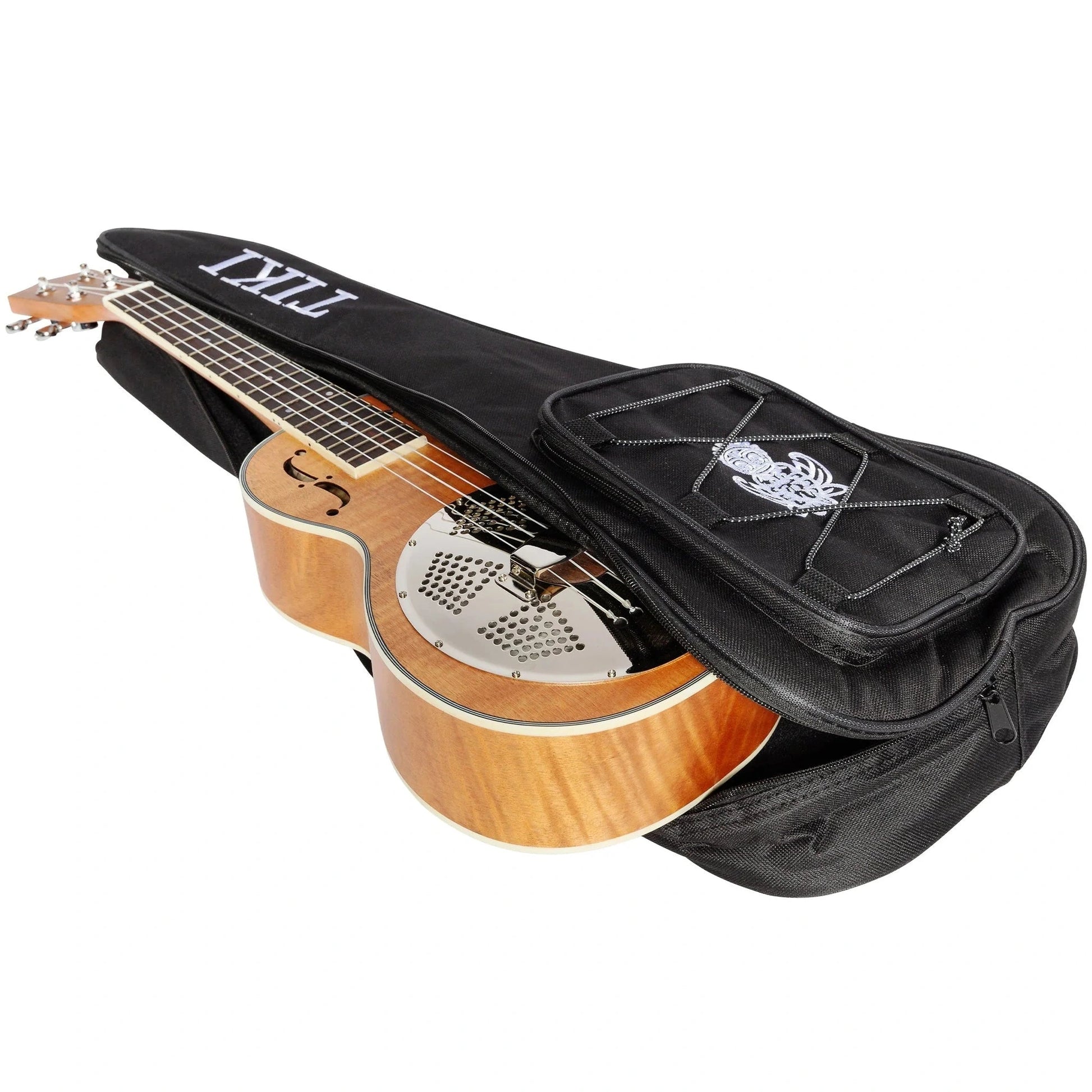 Discover the rich, full sound of the TIKI 26" Deluxe Resonator Uke. This folk instrument boasts a Honey Flame Mahogany Stain finish and Ovangkol fingerboard. Lightweight and easy to play, it's perfect for musicians of all levels. Includes gig bag for on-the-go convenience.
