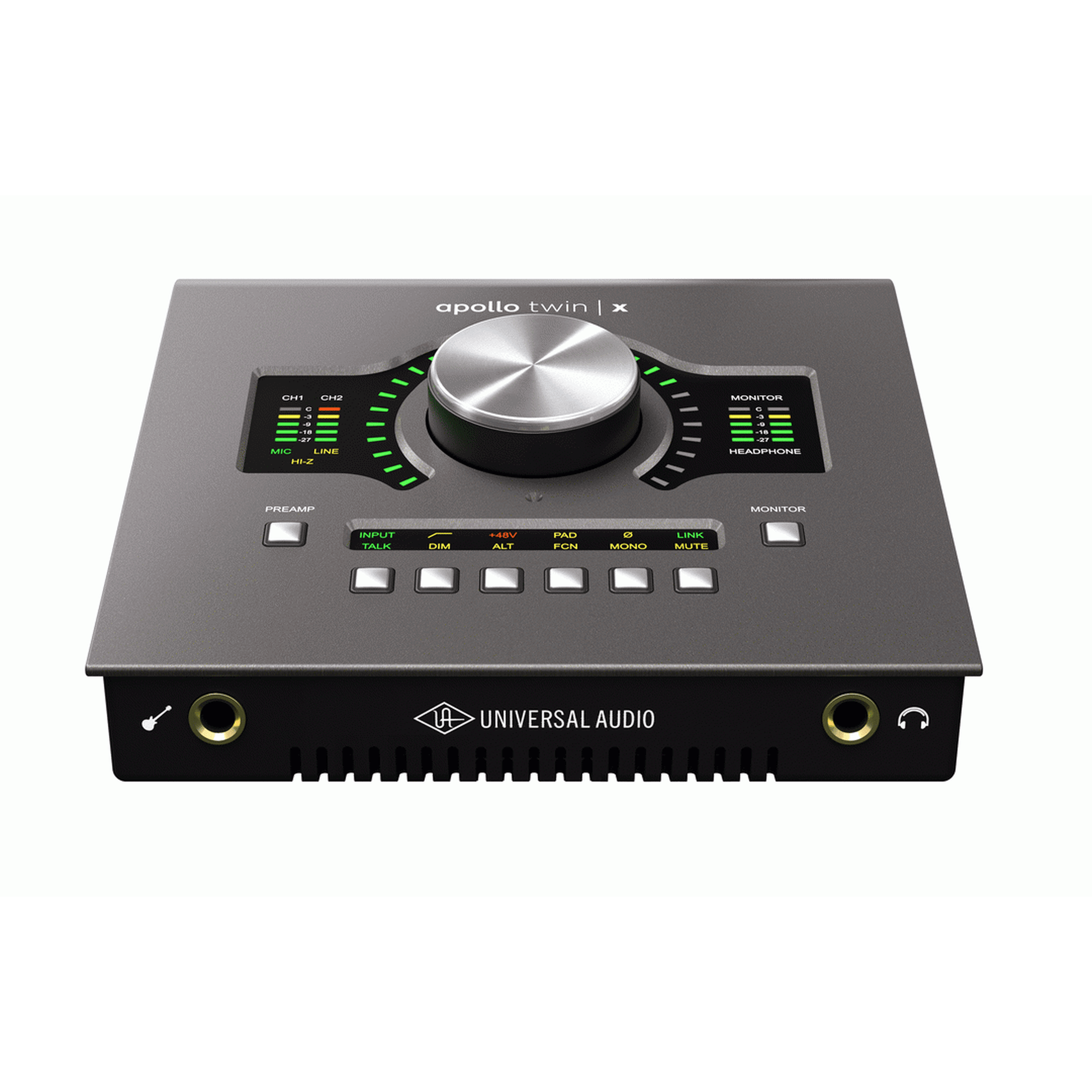 The Apollo Twin X USB DUO Heritage Edition is a high-end desktop audio interface from Universal Audio built for serious musicians, producers and engineers who demand studio-grade conversion, classic analog tone and real-time DSP-powered plug-ins. Despite its compact form-factor, it brings many of the technologies found in larger Apollo rack units to the desktop.
