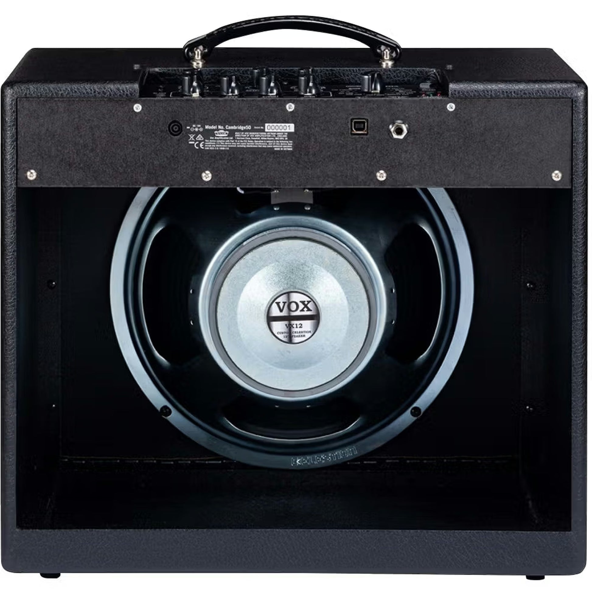 A Celestion VX12 speaker maximizes the amp’s 50-watt output, while the open-back cabinet design produces an open, articulate sound with the depth and presence expected from a 12-inch speaker.