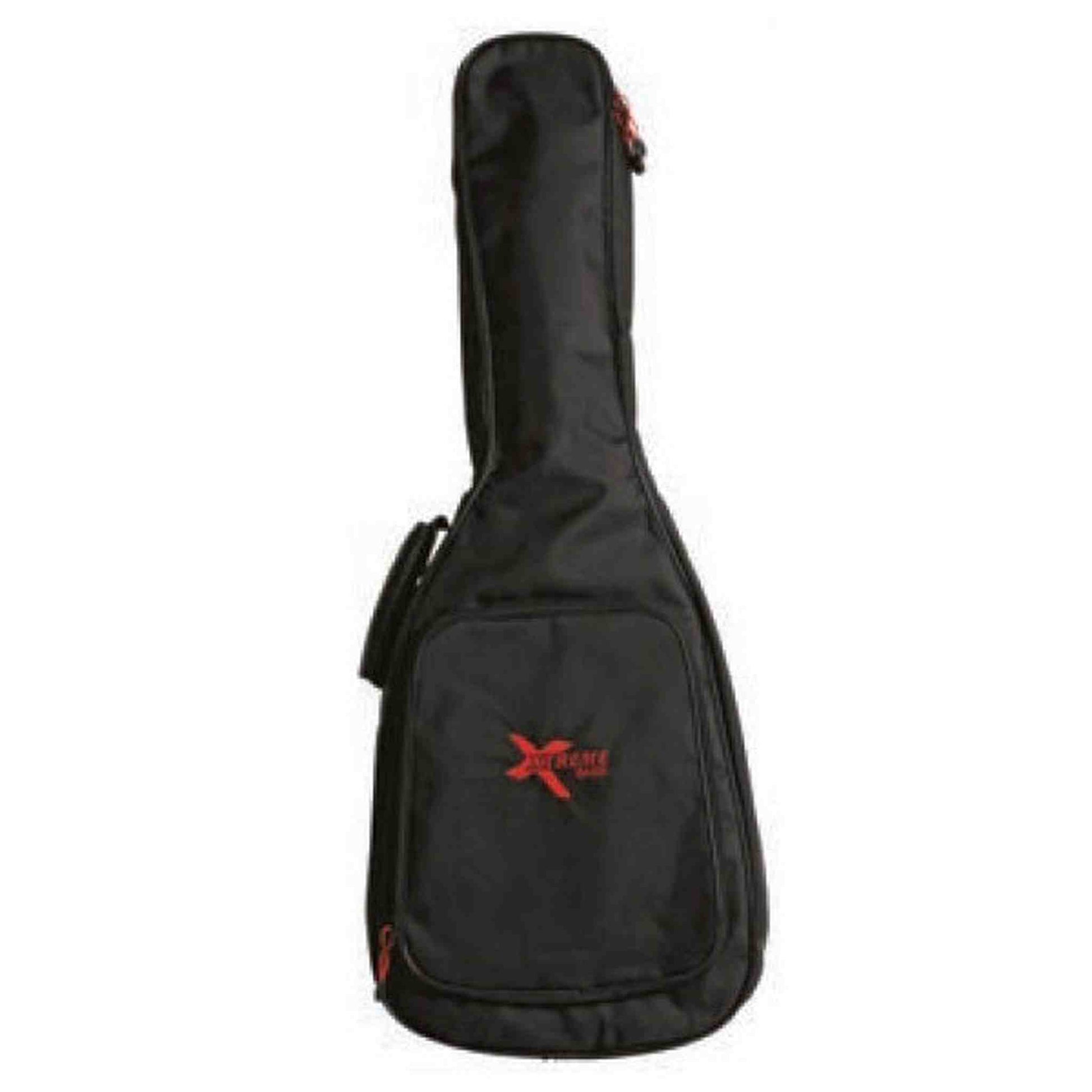 XTREME - Black Heavy Duty Nylon Classical 4/4 Guitar Bag waterproof yarn 5mm sponge padded and lined Reinforced at headstock and bridge Full length zip 1 accessory pocket Cross stitched cushioned carry handle 2 adjustable shoulder straps with comfort pads Rubber tread Toggles to all zips Embroidered Xtreme logo